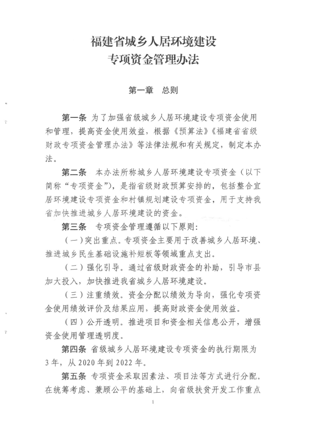 福建省財政廳福建省住房和城鄉(xiāng)建設廳關于印發(fā)《福建省城鄉(xiāng)人居環(huán)境建設專項資金管理辦法的通知》(閩財建[2020]3號)