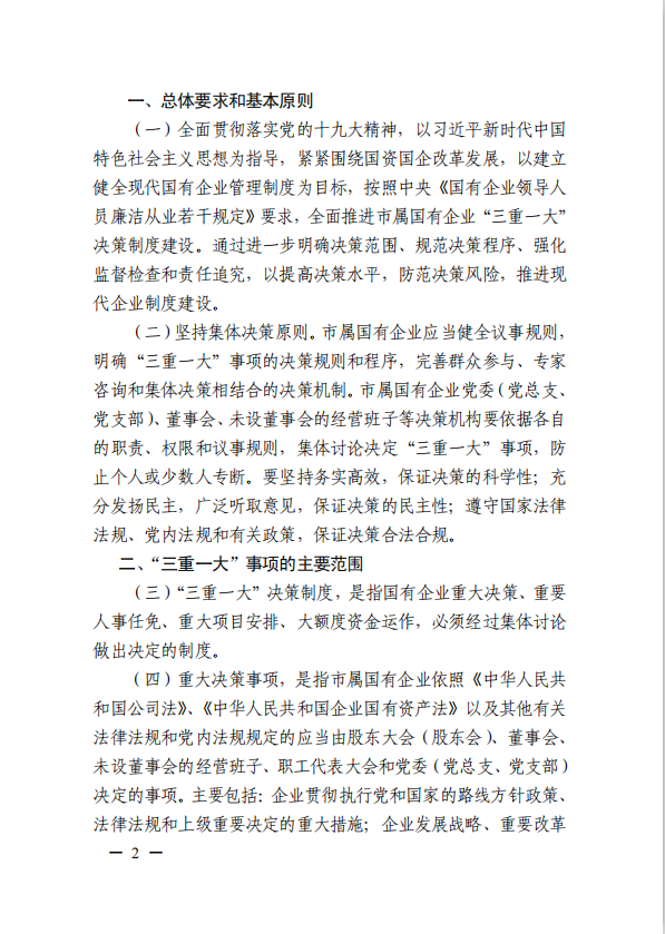 關(guān)于進(jìn)一步規(guī)范市屬?lài)?guó)有企業(yè)貫徹落實(shí)“三重一大”決策制度實(shí)施意見(jiàn)(國(guó)資黨委[2020]21號(hào))